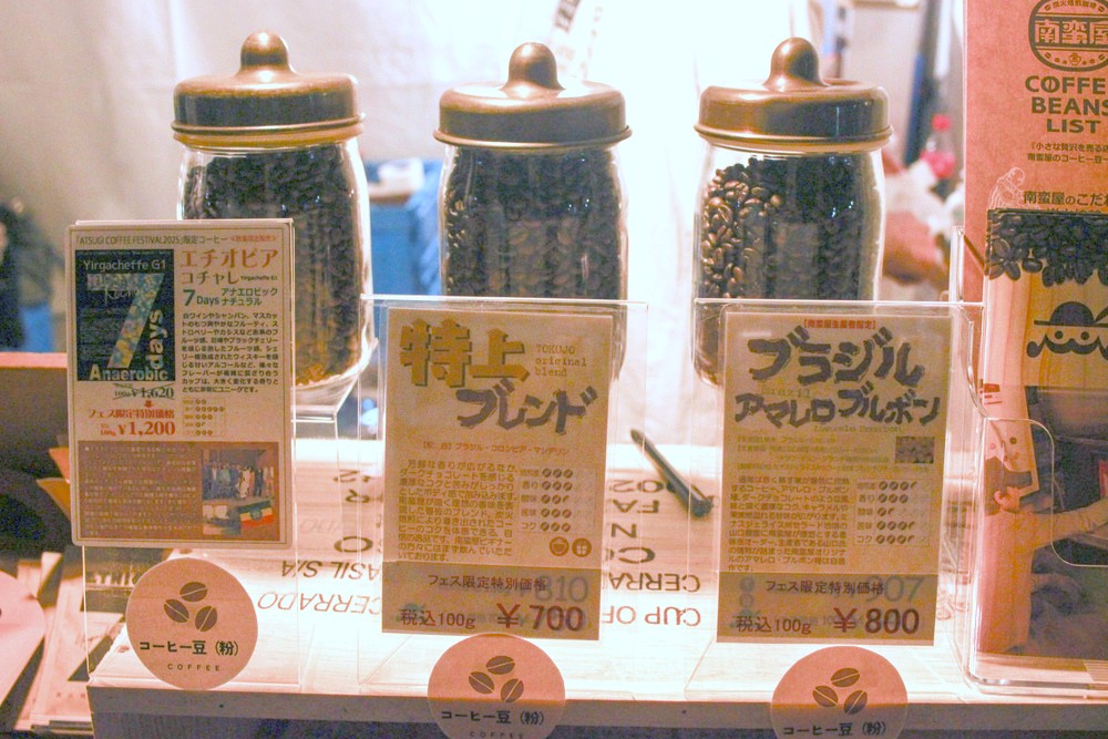 南蛮屋ではコーヒー豆だけでなく、コーヒー豆用の保存缶も販売していました。ATSUGI COFFEE FESTIVAL特価で豆も販売されていて、リーズナブルに豆を購入できるのは、こういったイベントならではですね。