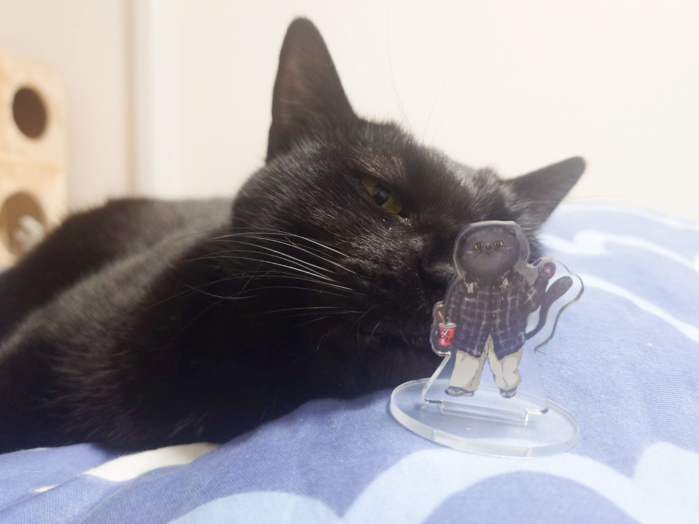 ガチャガチャでは、わが家の黒猫にそっくりのアクリルスタンドを狙っていたのですが、なんと一発でゲット!なんとも愛くるしいデザインです。