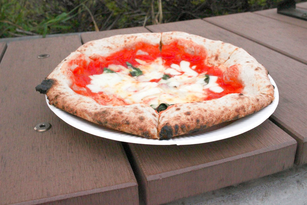 この日販売していたのはチーズのピッツァとマルゲリータの2種類。チーズのピッツァは大人気で、残念ながら完売していましたが、マルゲリータも大好きなので、そちらを注文。