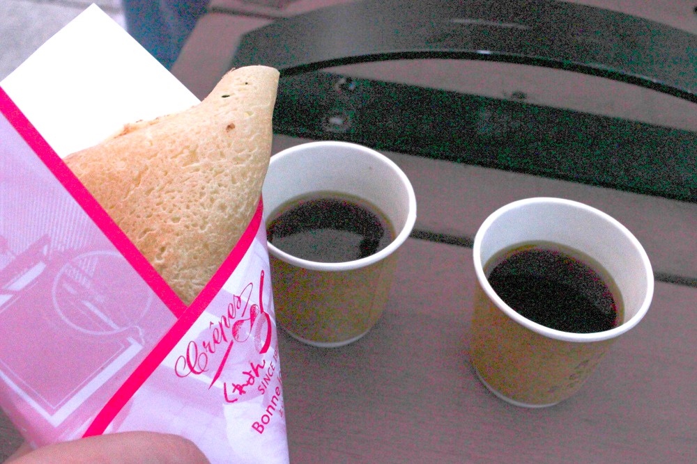 種類がたくさんあって迷いましたが、私はカスタードチョコバナナのクレープを選びました。甘いものとコーヒーの組み合わせは最高ですね。