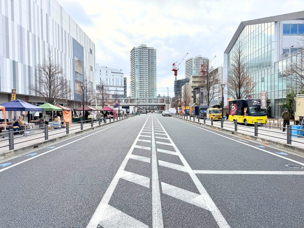 会場となったのは、海老名駅西口から徒歩約2分の「扇町プロムナード」。ららぽーと方面へ向かい、エビーロード沿いに進むとすぐに会場が見えてきます。