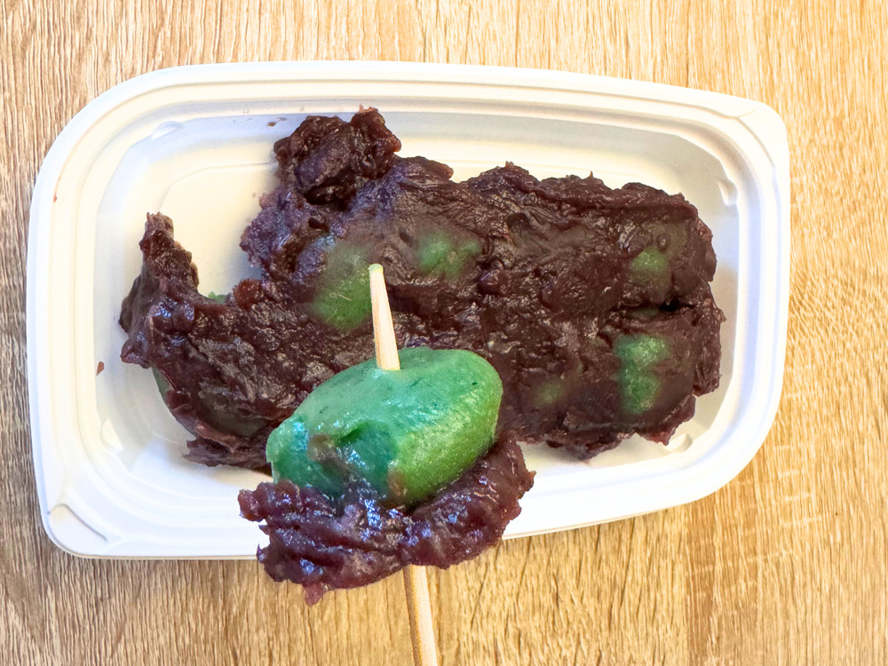 たっぷりとかけられた粒あんの優しい甘さと、よもぎの豊かな香り、そしてもちもちとした弾力のある食感。素朴ながらも丁寧に作られた味わいに、心がほっこり温まります。