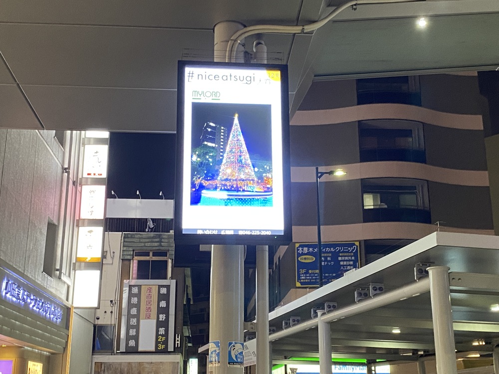 こちらの電光掲示板に、あつぎイルミネーションも掲載されていました。