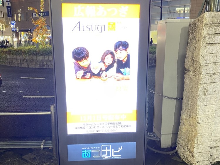 「あつナビ」は、市の情報を効果的に発信するために本厚木駅および愛甲石田駅周辺に設置されている電光掲示板。