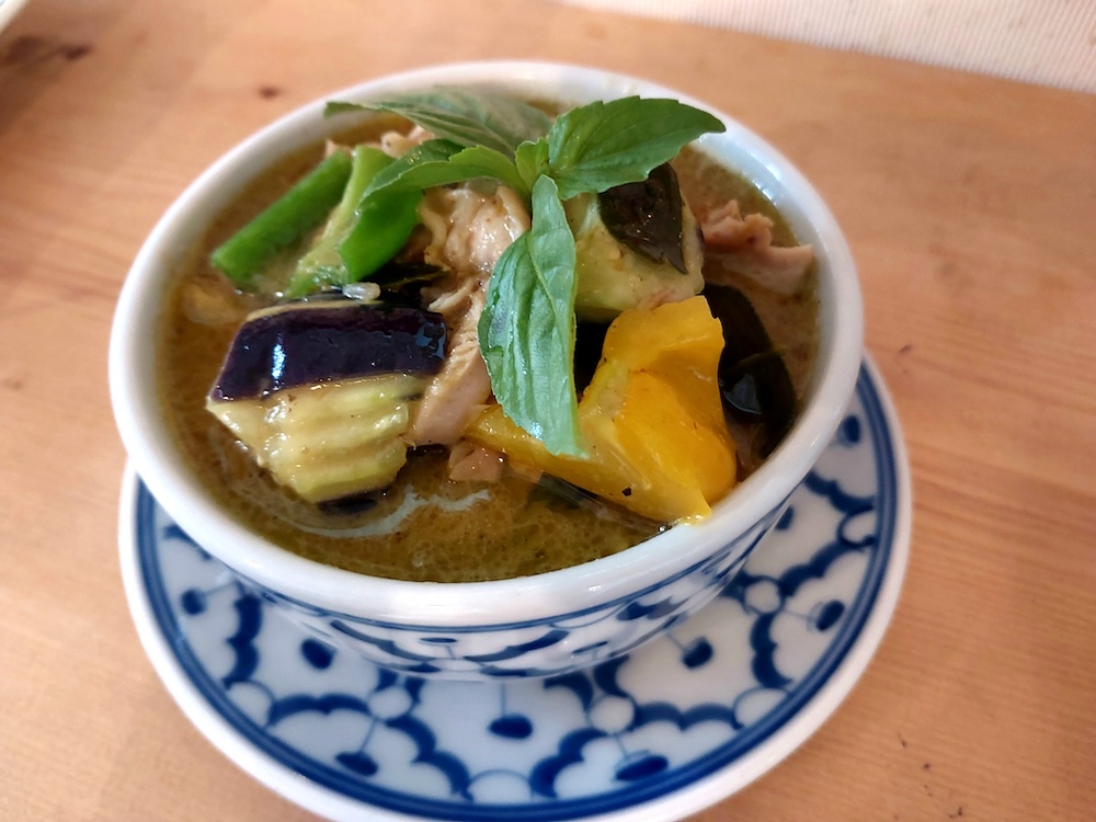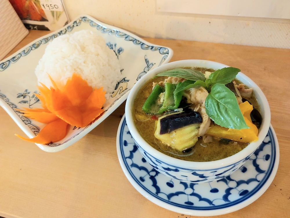 ちなみに、グリーンカレーの特徴的な緑色は、青唐辛子とハーブの色から来ているそうです。見た目からして食欲をそそられますよね。