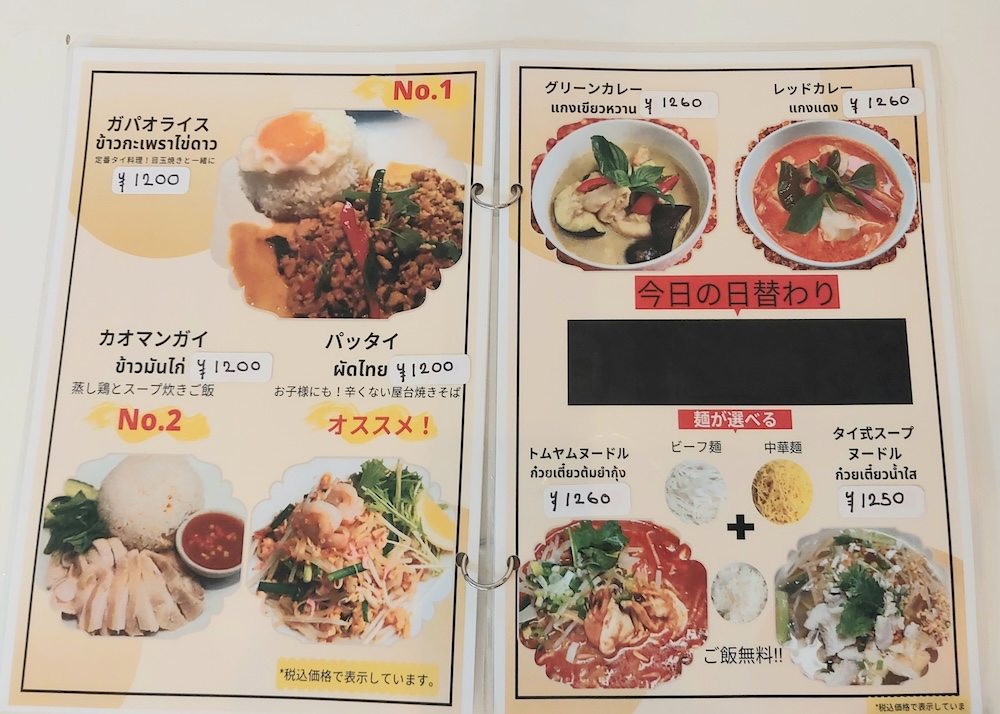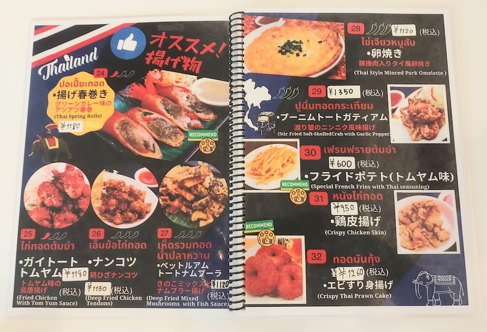定番のヌードル系やタイカレーはもちろん、お酒によく合いそうな揚げ物系の一品料理も充実しています。