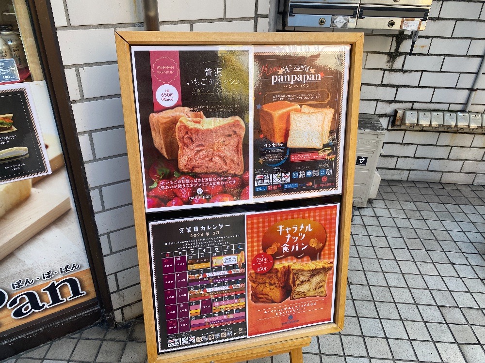 お店の方に伺うと、2024年3月5日〜16日がいちごフェアの期間で、3月21日からは桜あん食パンが販売される予定だと教えてくださいました。