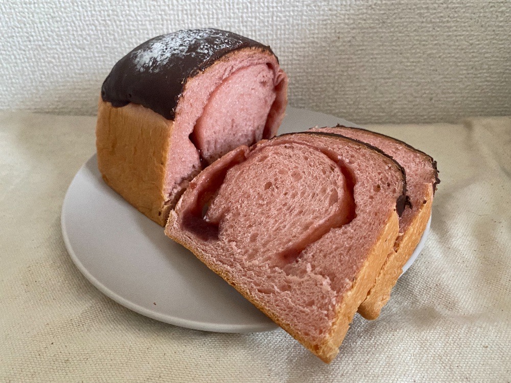 急いで家に帰ってナイフを入れてみると、パンの断面がとってもきれいなピンク色!