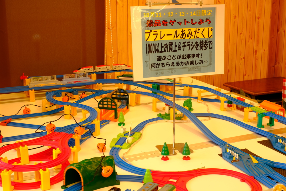 期間限定で1000円以上購入した人は、プラレールを使ったあみだくじができるそう。