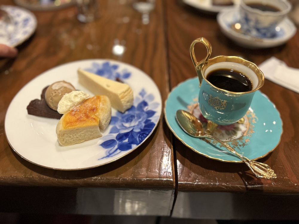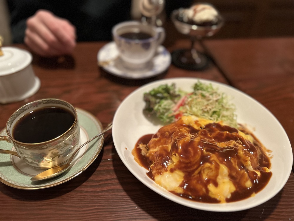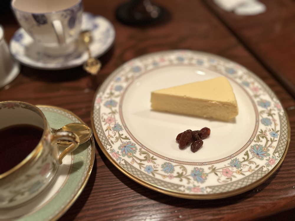 オムライスとチーズケーキって、なかなかヘビーな組み合わせかなと思いきや…こちらのチーズケーキは、さっぱりした酸味と程よい甘さで重くありません。添えられたラムレーズンも相まって大人の味。珈琲との相性もとてもいいんです。