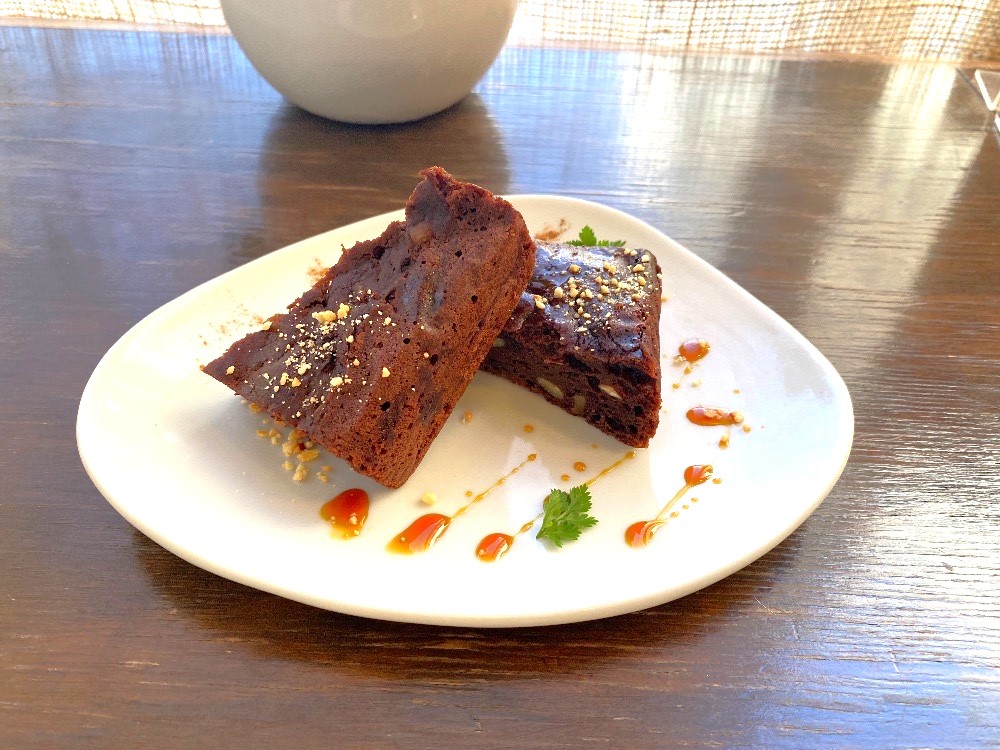 おしるこやパフェなど、どれも魅力的なものばかりで迷いましたが、今回はお豆腐でできたガトーショコラを注文。こちらは、この日の日替わりケーキでした。