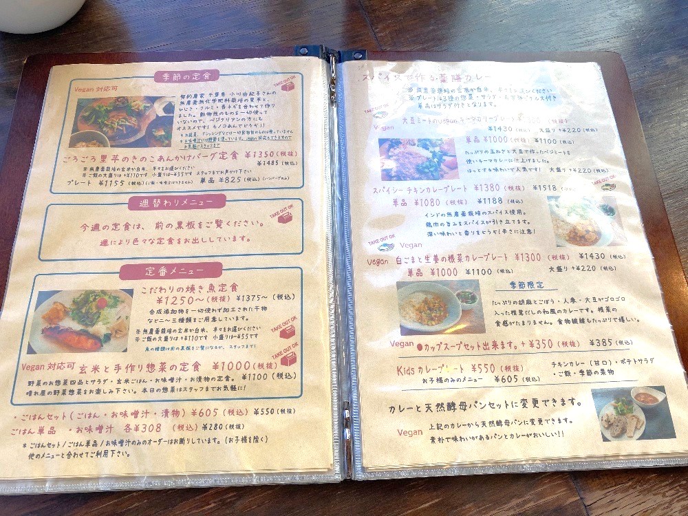 「薬膳カレー」や「雑穀バーガー」など、ランチメニューもおいしそうなものが並んでいました。ヴィーガンメニューも豊富でアレルギーにも対応しているそう。