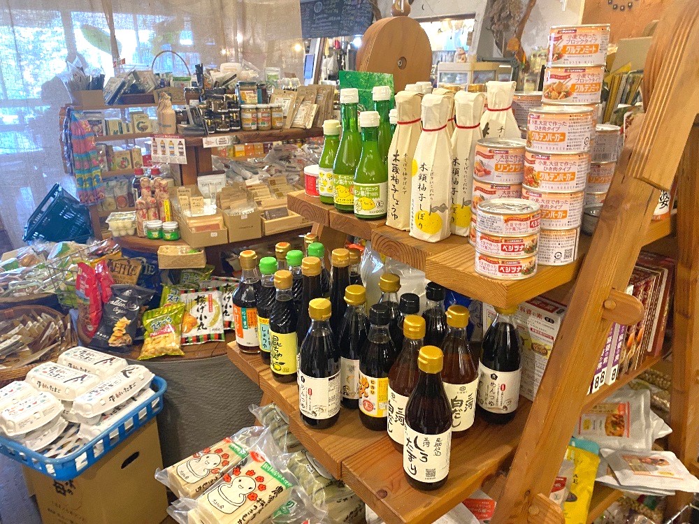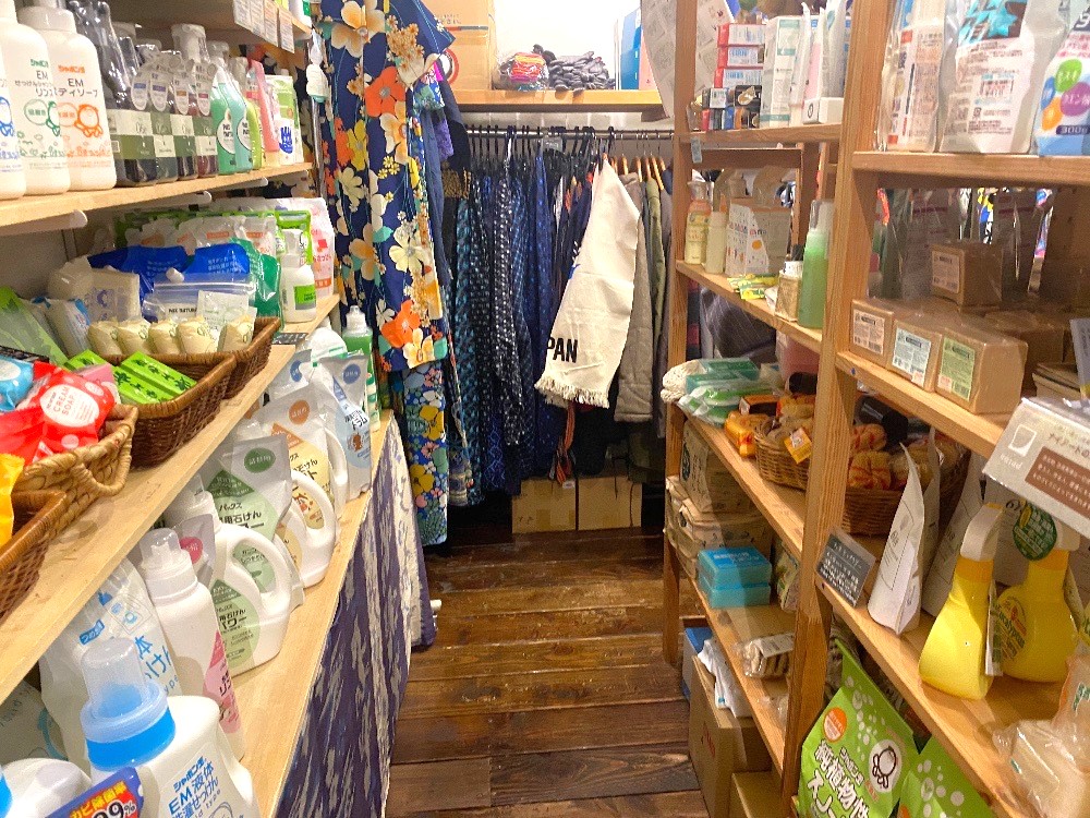 古着の他には無添加石鹸などの雑貨から、無農薬野菜に調味料といった食品も盛りだくさん。お肉を使わず小麦粉から作られた「グルテンミート」、大豆で作った「ベジツナ」や「グルテンバーガー」という缶詰なども扱っていましたよ。