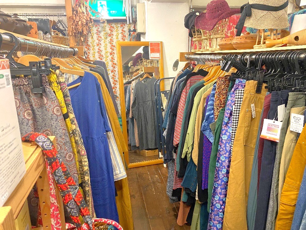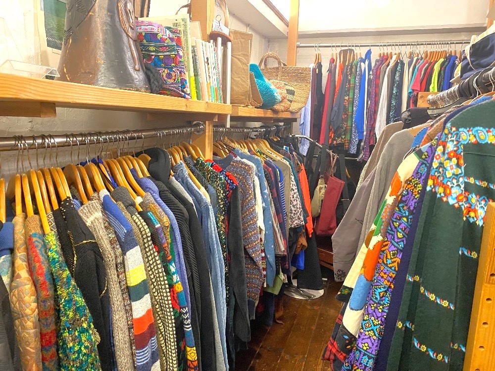 雑貨といっても多くは古着。かなりの数の古着がところ狭しと並んでいました。