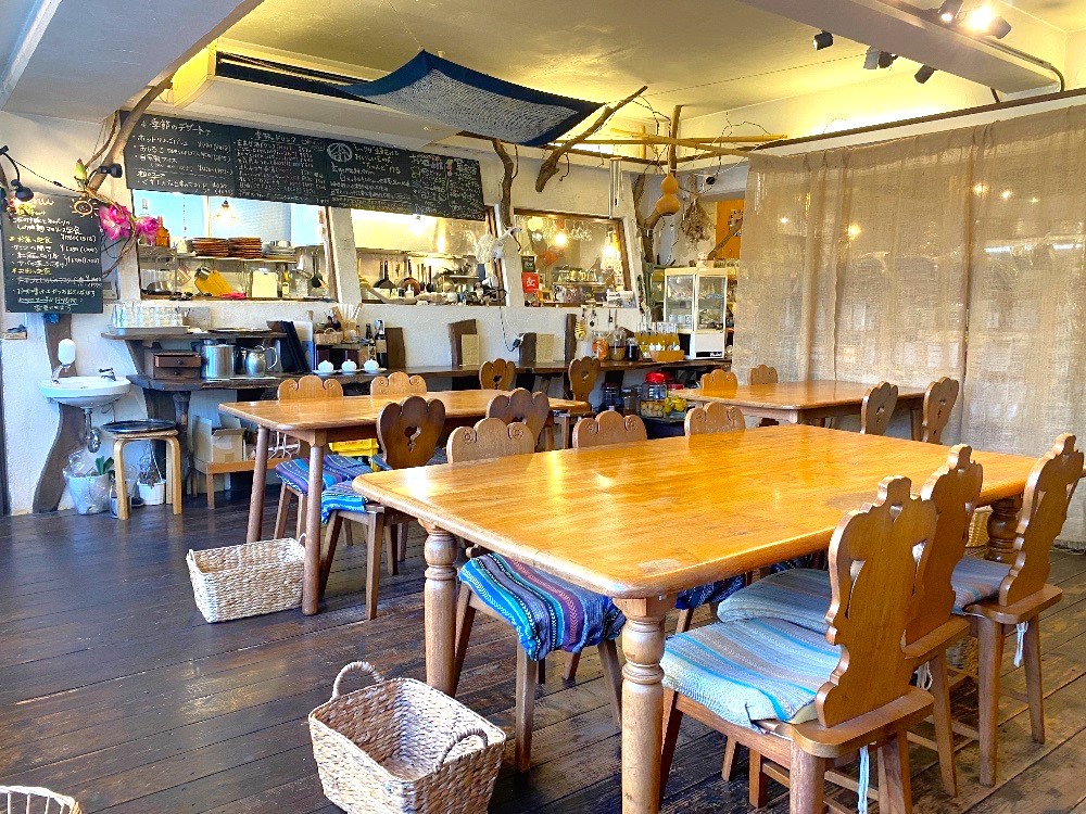雑貨や古着に囲まれて、体に優しくおいしい食事を楽しむことができる「晴れ屋」。