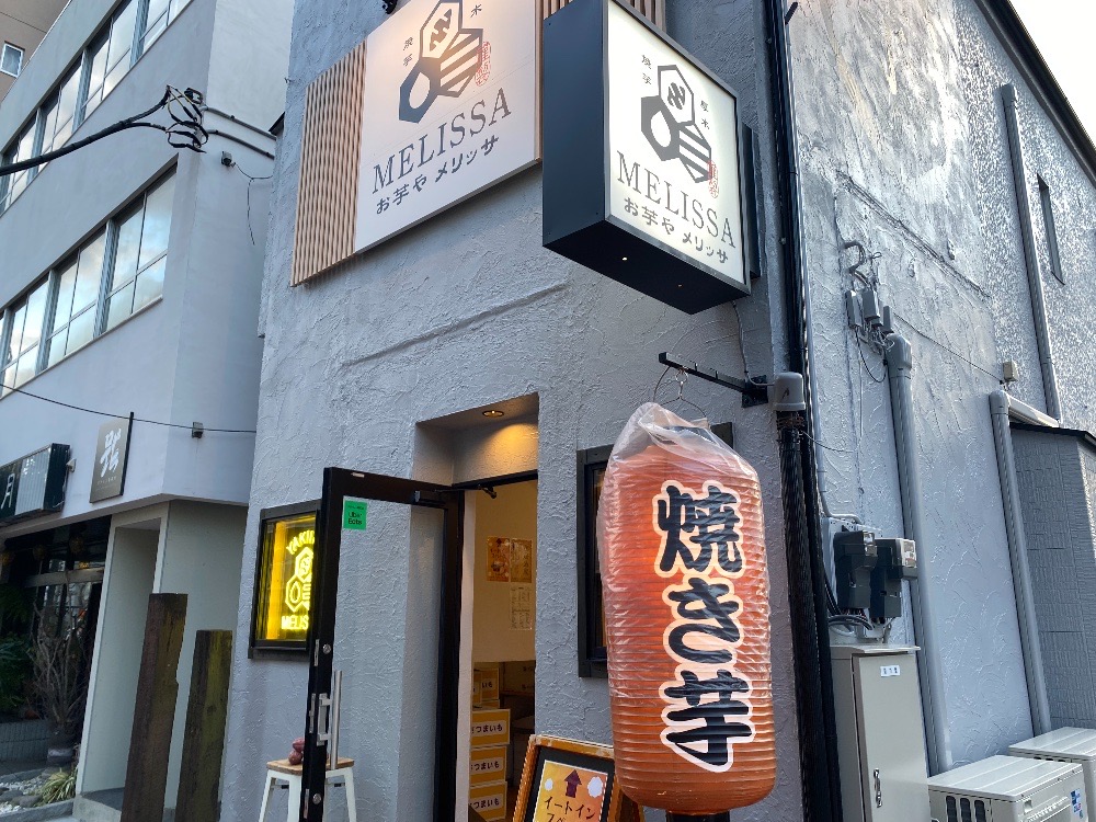 本日ご紹介するお芋やMELISSAは、カフェのようなかわいらしい看板と「焼き芋」と書いてある赤い提灯が目印です。