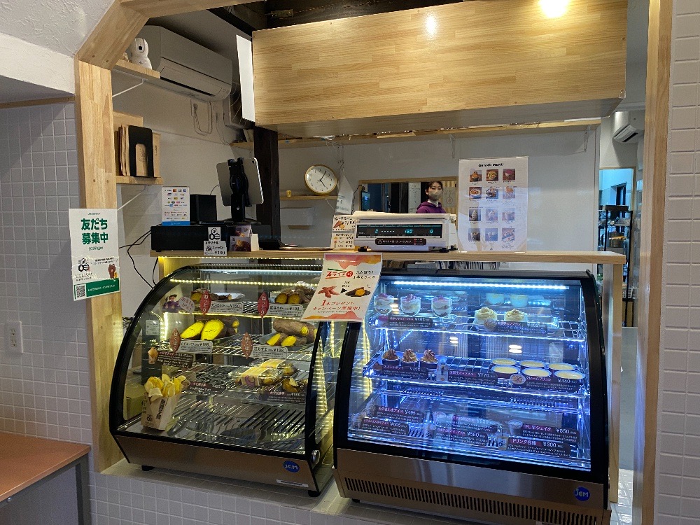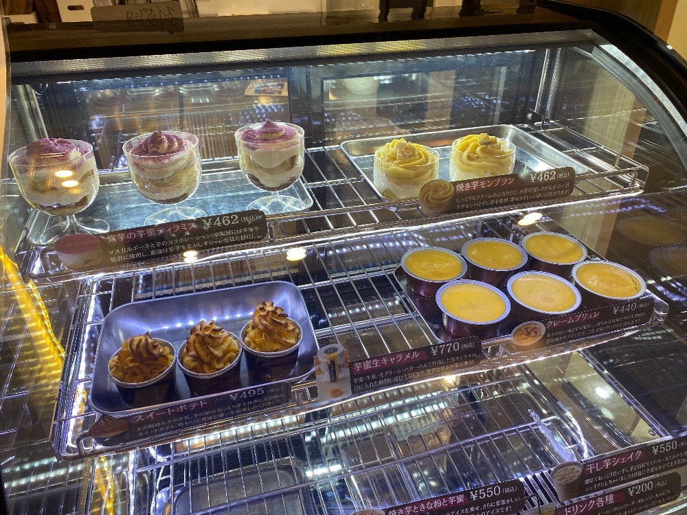 正面にはショーケースがあり、焼き芋やスイーツが並んでいました。