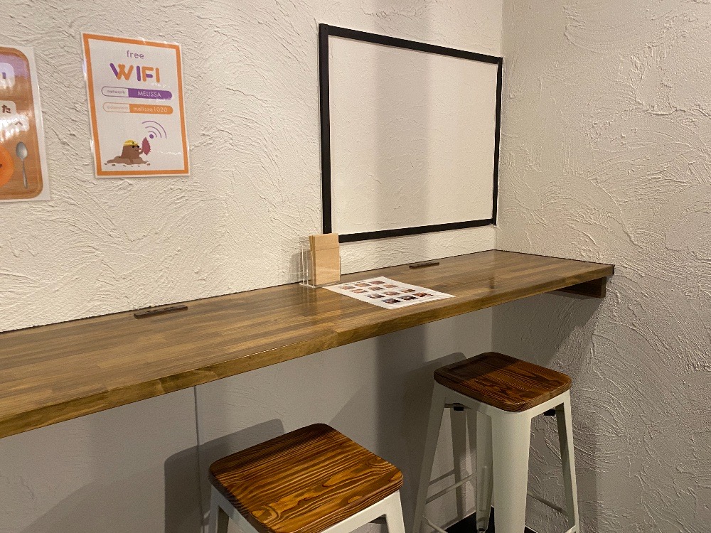 カウンター席ではコンセントが使用可能なほか、店内にはフリーWiFiも飛んでいます。