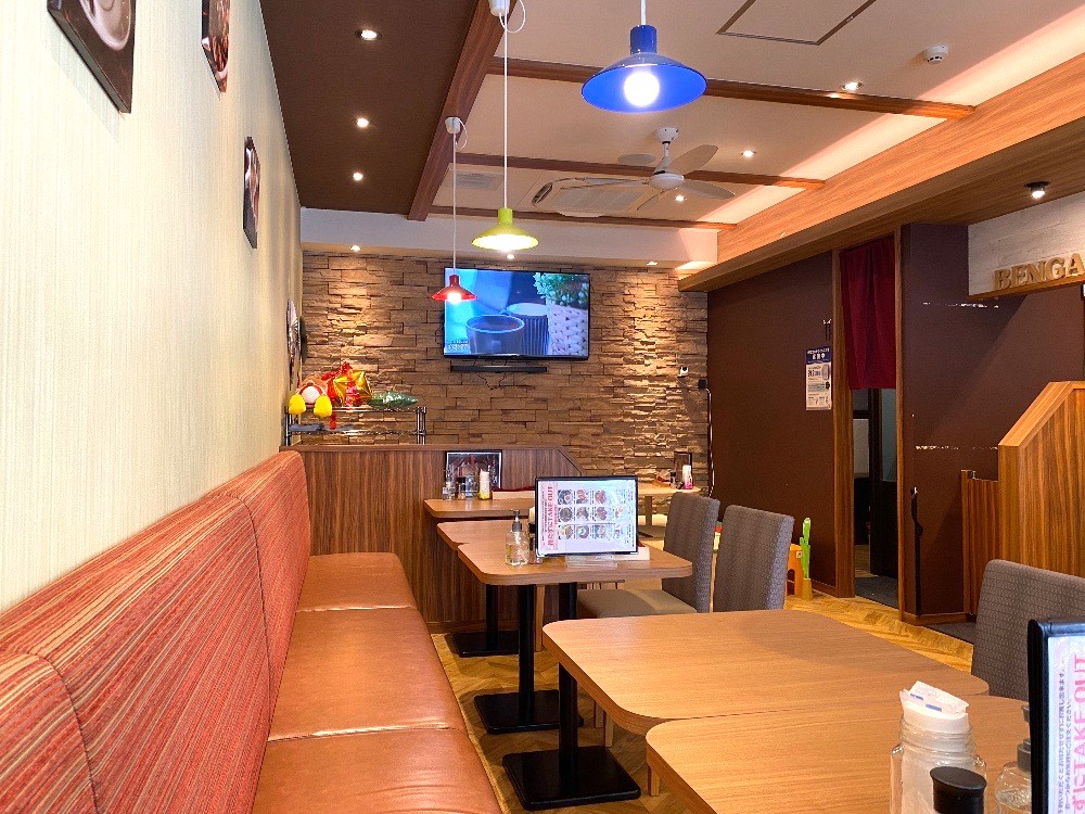 店内は木の温もりがある雰囲気で広々。開放的な空間に音楽がゆったりと流れます。テーブル席とカウンター席、奥には小上がりの席もありました。