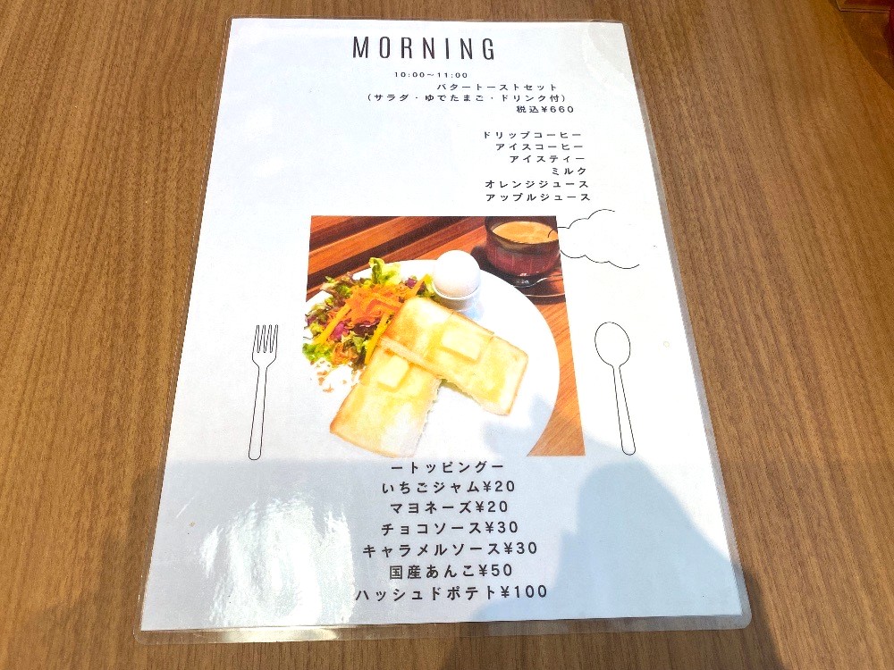 モーニングは10時〜11時。11時以降はランチタイムに切り替わるため、モーニング利用の方は早めの到着を目指しましょう♪