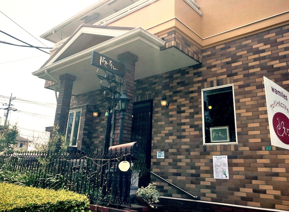 この看板を目印に左折すると、ステキな洋館風の建物が見えてきます。こちらが「Tea room ぽっとてりぃー」です。