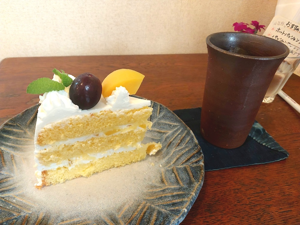 そして、このケーキがのっているお皿も温かみのあるとてもステキな陶器ですよね。アイスコーヒーのカップも、手に馴染むほどよい重さと心地良い手触りで、冷たい飲み物にぴったりでした。