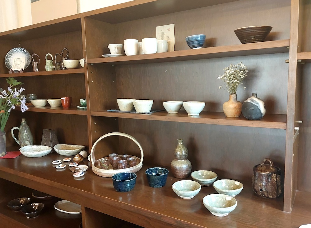 店内の一角にはミニギャラリーがあり、私が訪れた日は愛川町出身の陶芸家さんによる陶器などが展示・販売されていました。また、店内のあちこちに飾られている美しいお花は、お庭で咲いたものを生けているそうです。