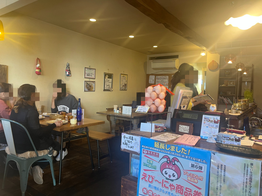 お店に入った時、店内はカウンター1席とテーブル席が1席埋まっていました。その後すぐにカウンター席が半分と、テーブル席がすべて埋まりました。
