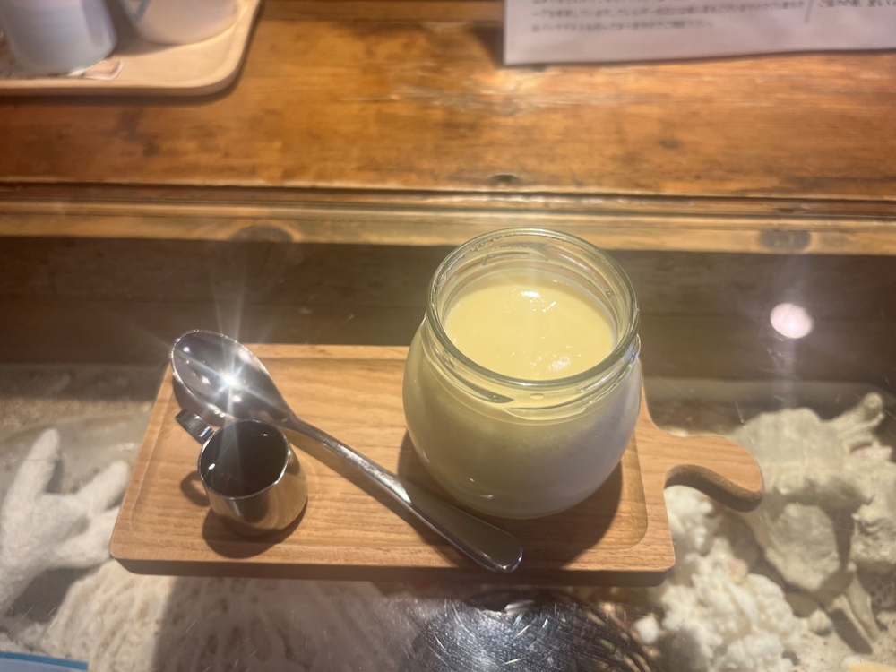 デザートも気になったので、オリジナルプリンを注文しました。甘過ぎない、なめらかなプリンです。
