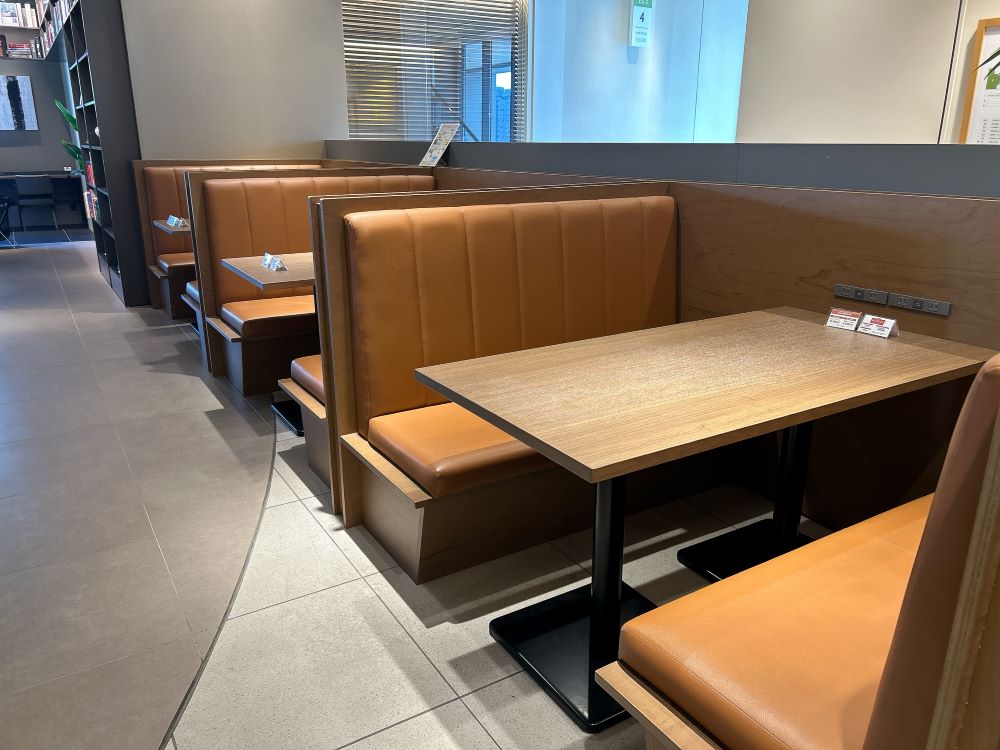 仕事や勉強をするのに最適な、1人用の席もあります。