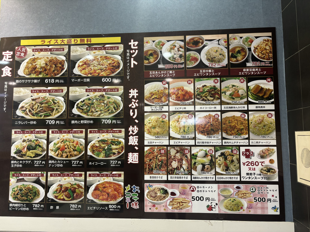 丼ぶりや炒飯、お子さまメニューまであるのでかなりの品数です。フードコートとしては珍しいのではないでしょうか。