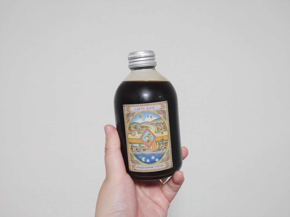 厚木珈琲ではコーヒー牛乳用の「ラテベース」を販売しています。コップにこのラテベースと、牛乳を注ぐだけでコーヒー牛乳のでき上がり。私は実家の母にもこのラテベースを贈りました。