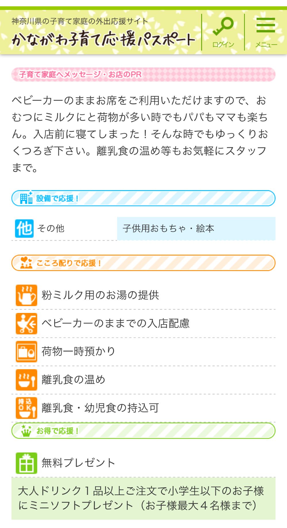 そして、コメダ珈琲大谷店は、神奈川県で実施されている「かながわ子育て応援パスポート」に参加している店舗で、子育て中のご家族にやさしいお店です。
