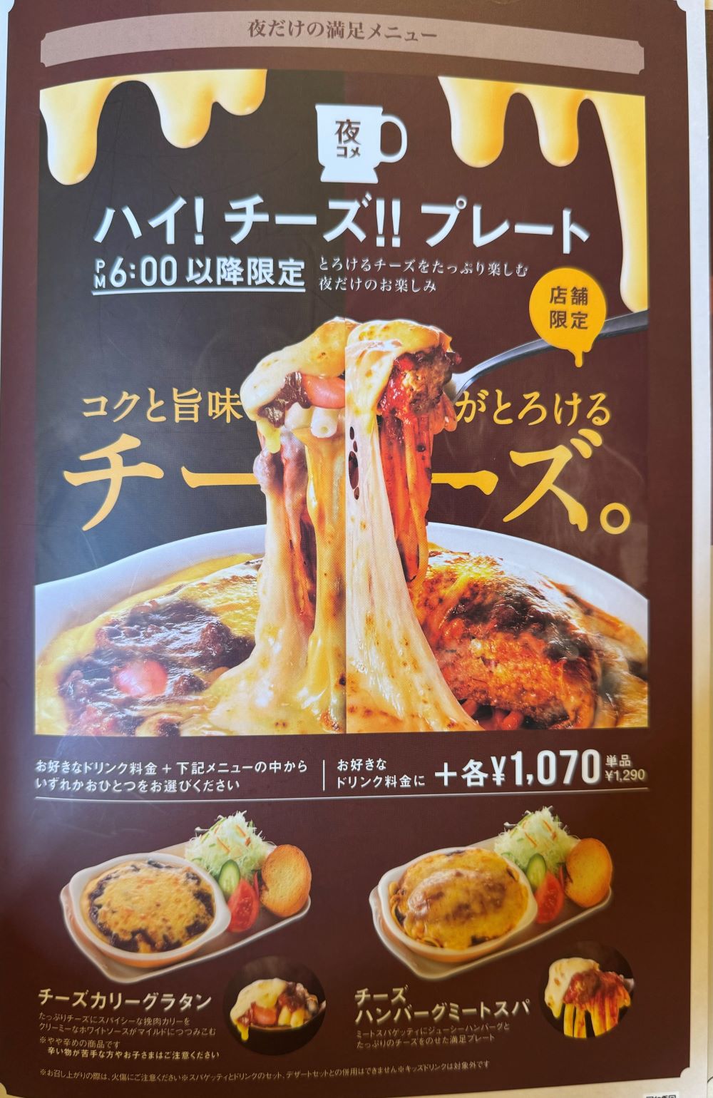 コメダ珈琲では朝の時間帯の「モーニングサービス」以外にも、夜18時以降限定のメニューもあります。