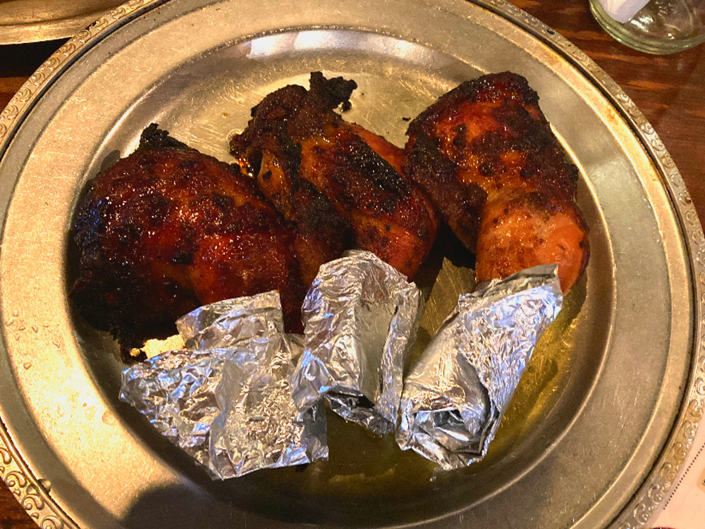 アンチョビポテトまでが最初にポンポンとテンポよく提供され、程よい時間を置いて、名物のチキンと自家製パンが運ばれてきました。