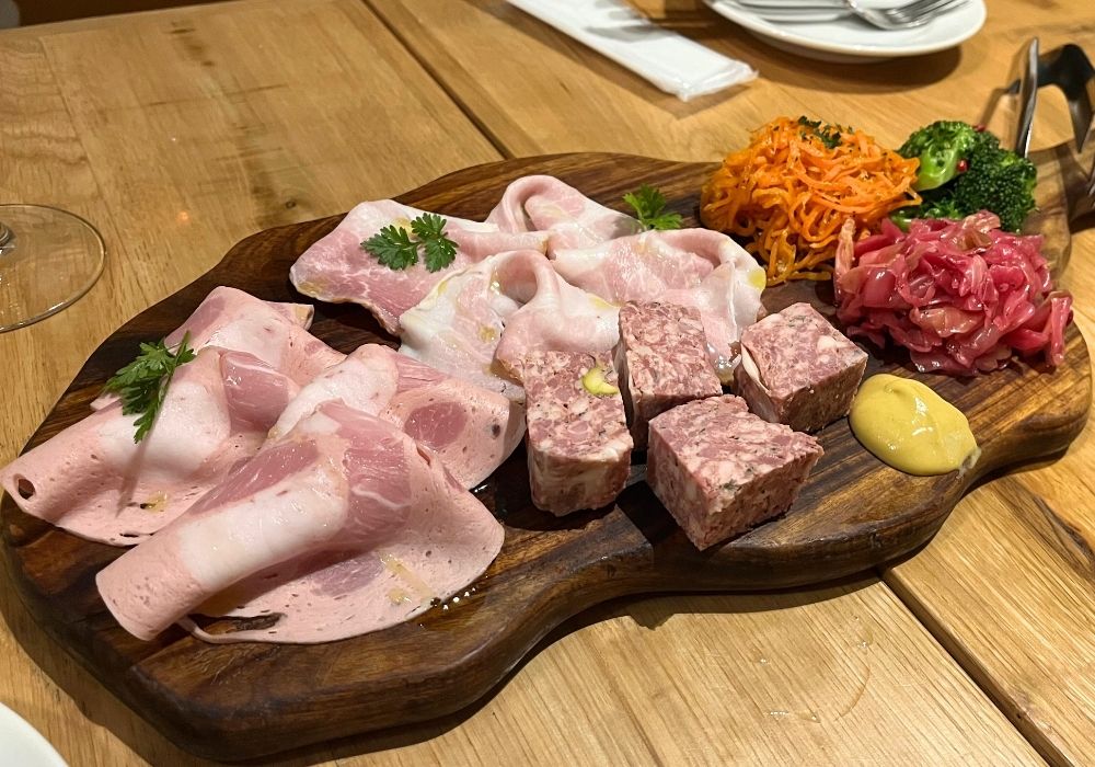 前菜3種類とパテドカンパーニュ、ビアシンケンとボンレスハム。