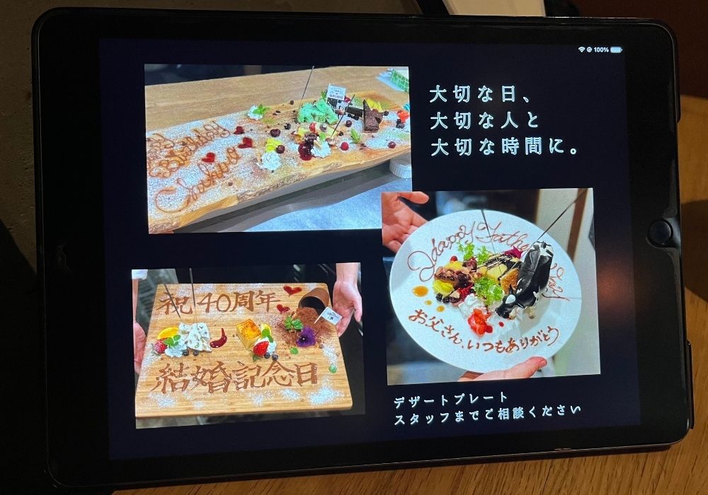 ちなみにこの日は飲み放題を注文しており、飲み物の注文はタブレットで行うシステムだったのですが、こんな豪華なデザートプレートも用意できるみたいです!