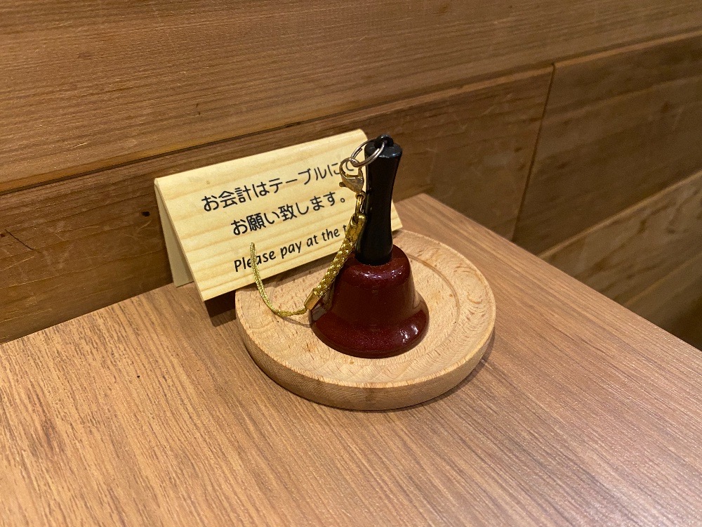 店員さんを呼ぶときに使うのは、飲食店でよく見かけるボタンではなくベル。