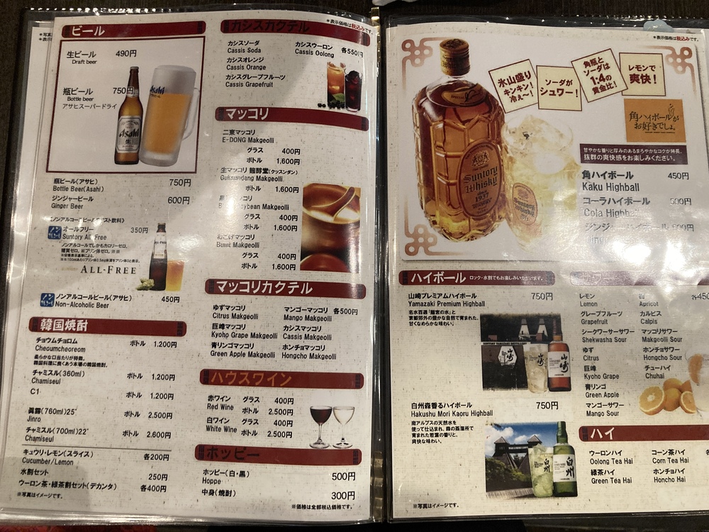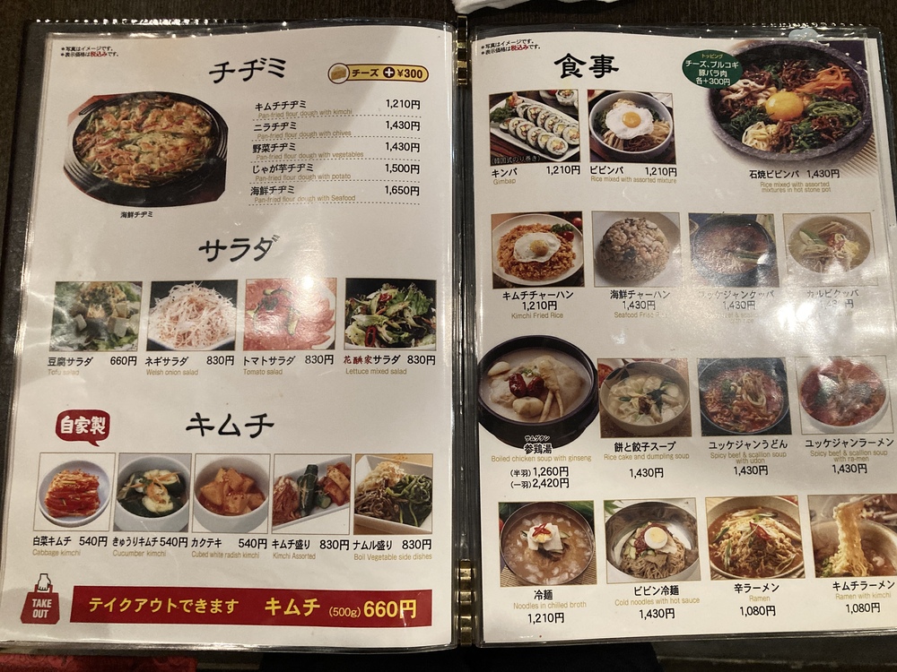 料理の種類はとても充実しており、フードメニューだけでもキンパやビビンバ、ユッケジャンラーメン、チヂミなどさまざまな韓国料理が揃っています。