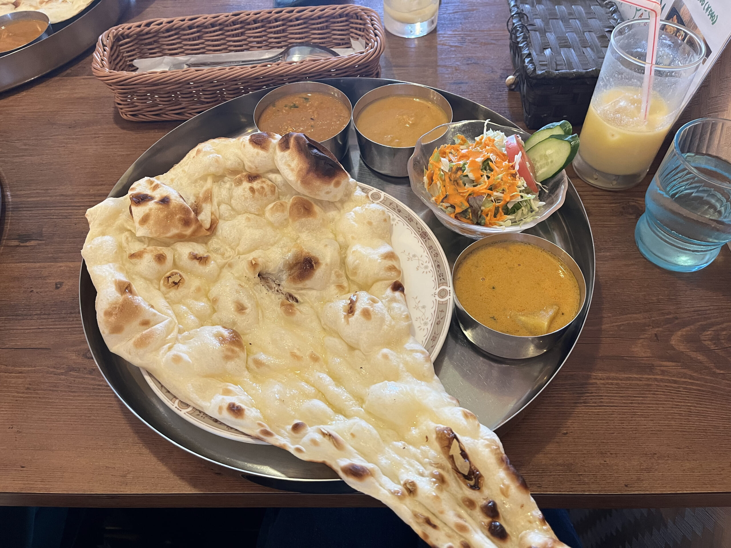 ランチメニューはかなりのボリューム!大判のナンで満腹に