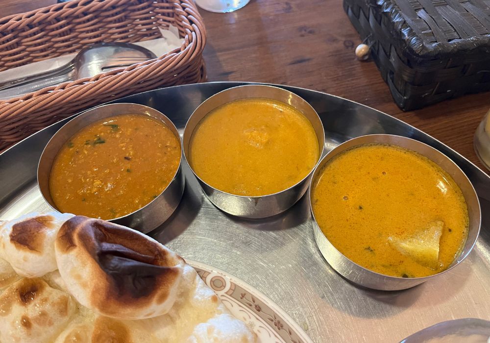 カレーランチは本格的なカレーを複数味わえるだけでなく、こだわりのナンやマンゴーラッシーもついているお得なセットでした。