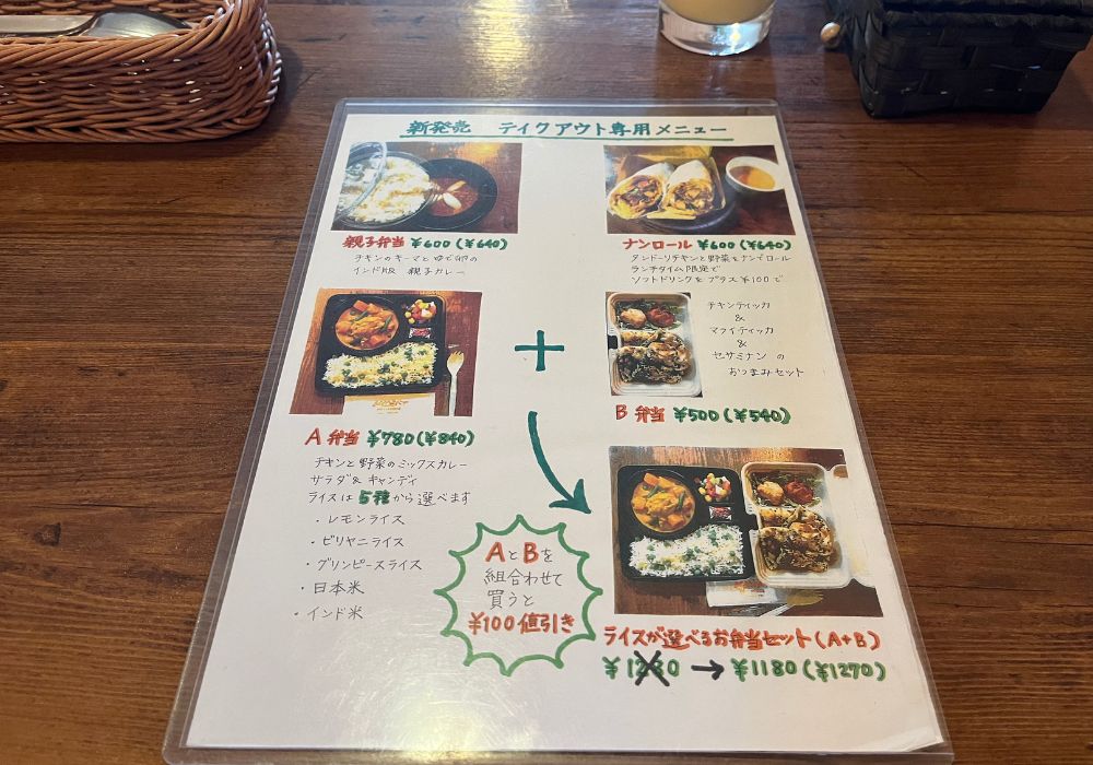 こちらの「ボンベイ」には、テイクアウト限定メニューもあります。