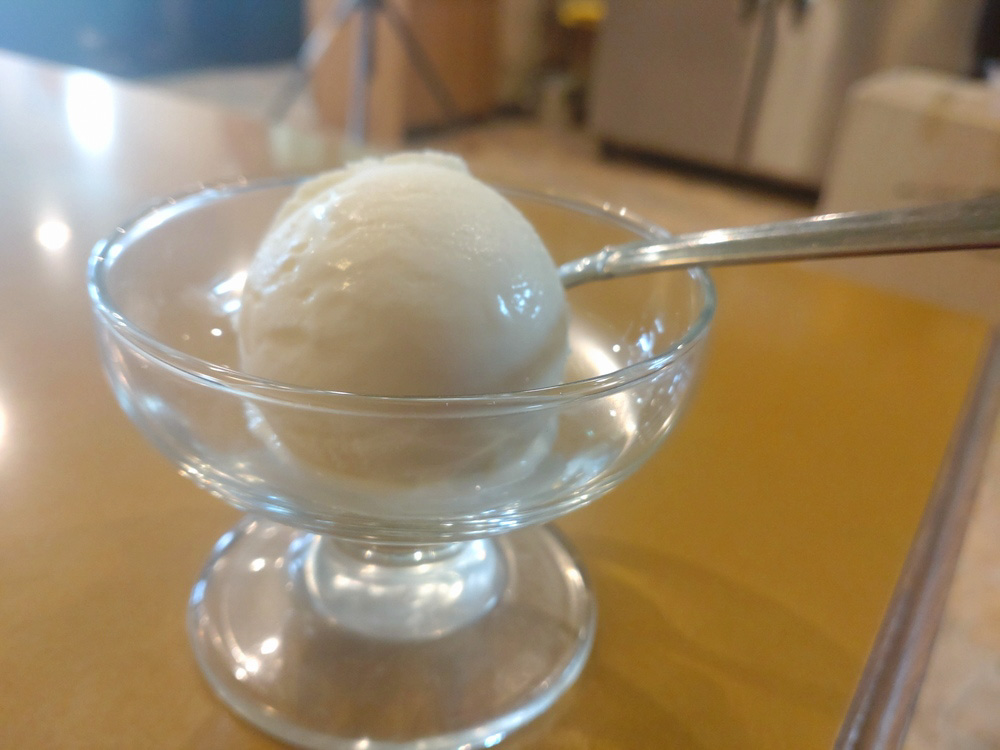 カレーをお腹いっぱい食べたあとは、デザートのバニラアイスクリーム。辛いカレーのあとは、甘いデザートでお口直し。濃厚な甘さが口いっぱいに広がります。