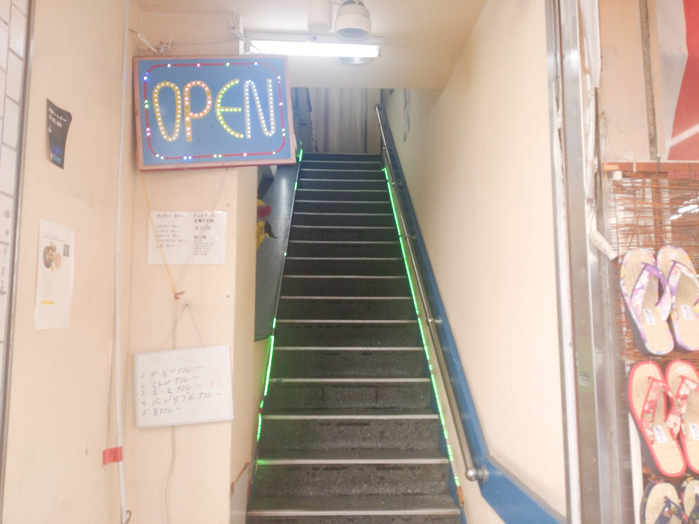 この階段をのぼって2階が入り口です。