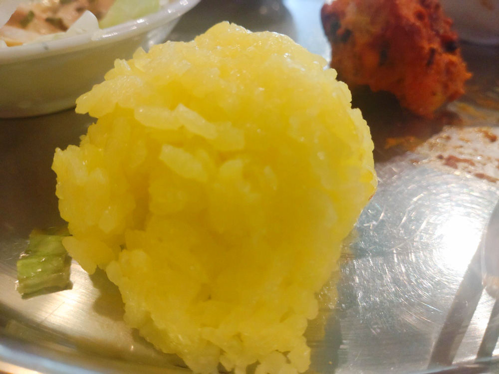 インドカレーといえばナンですが、こちらのライスもよく合います。少し甘みのあるやわらかい米が、辛味の強いカレーと絡み合い相性抜群です。