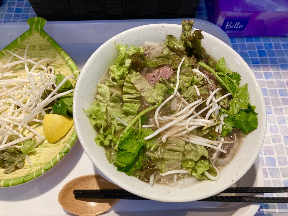 米粉の麺と牛肉、加えて、たくさんの野菜が食べられて、フォーは栄養バランス的にも非常に優れた料理だなと感じました。