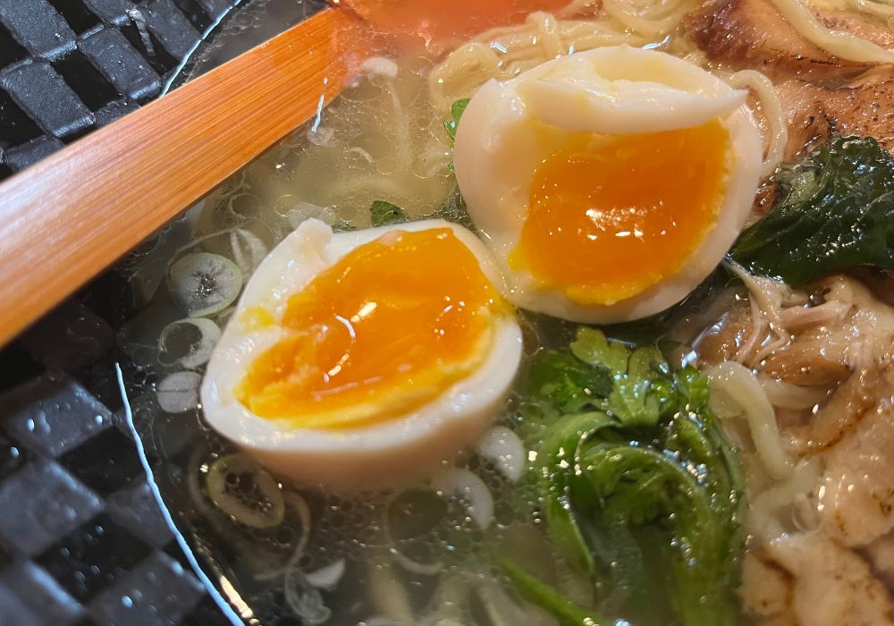 こちらは、1日30個限定の味玉トッピングです。塩加減と黄身の柔らかさが絶妙!