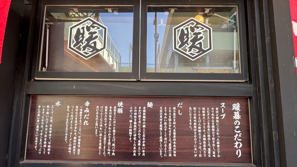 「ラーメン暖暮」は、駅からも近く商業施設が充実した立地で、ショッピングの合間に帰りにふらっと立ち寄れる気軽さと、本格派の味わいを兼ね備えた一軒です。