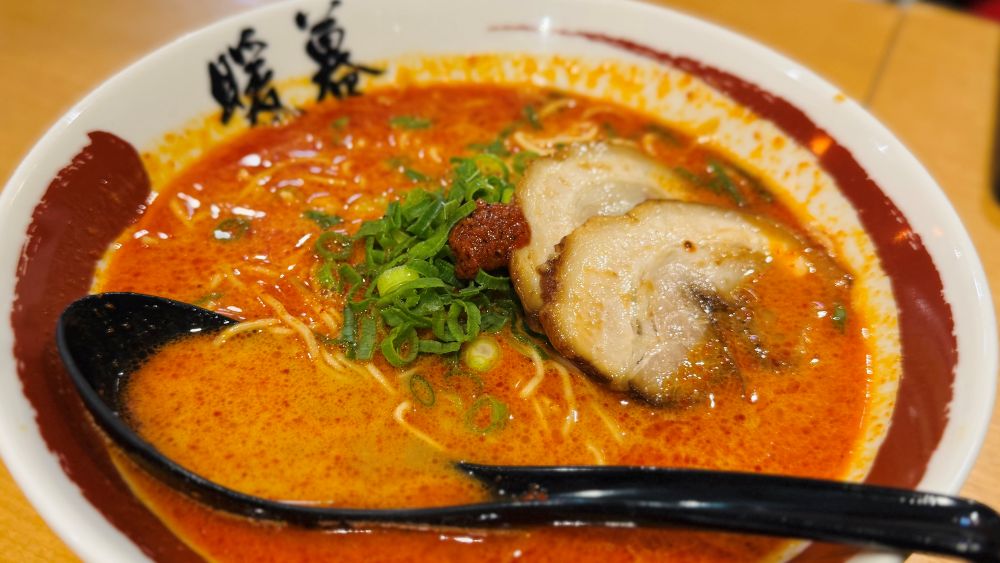 スープの上に添えられた赤い辛味だれを少しずつ溶かしながら食べ進めることで、味の変化を楽しめるのも面白いポイントです。