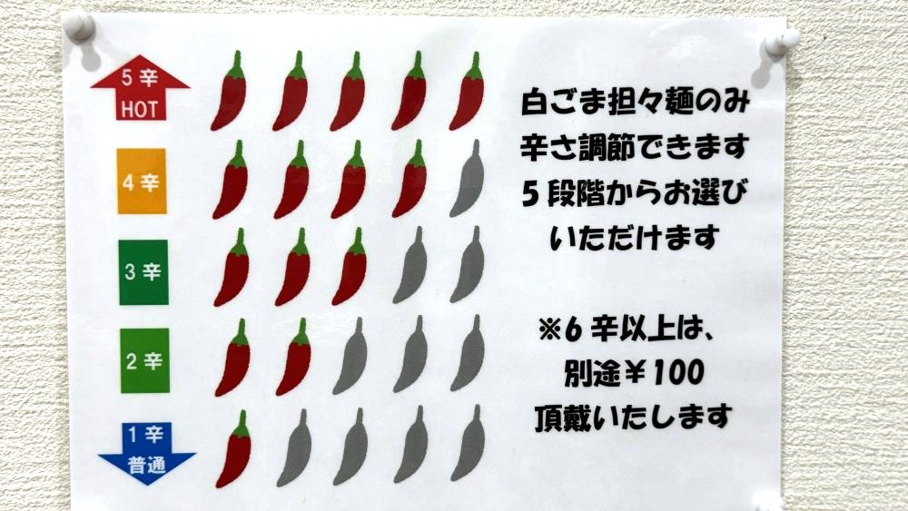 豊富なメニューの中でも辛い物好きな方におすすめなのが、辛さ調整が可能な白ごま担々麺。